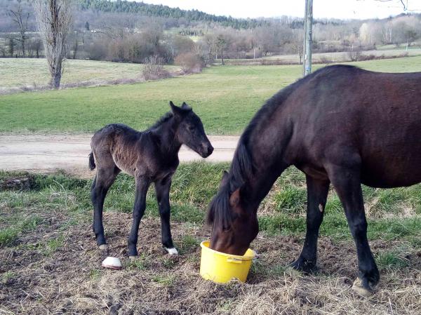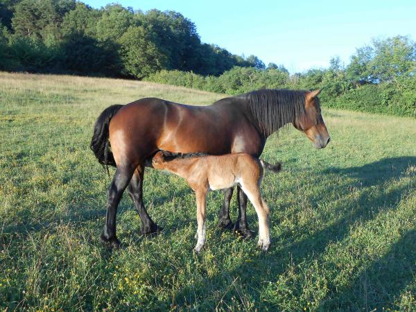 Notre élevage est composé de 3 juments poulinières et de 2 poulains/an vendus au sevrage ou à 3 ans débourrés.